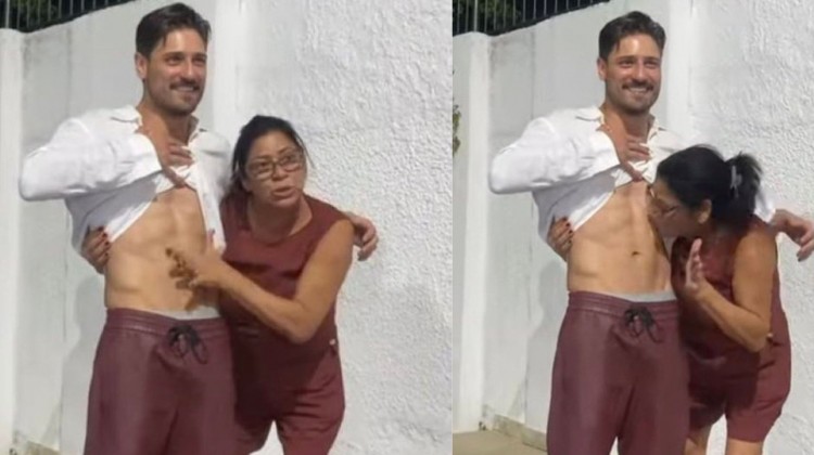Delma beija tanquinho de Daniel Rocha, namorado de Vitória Strada