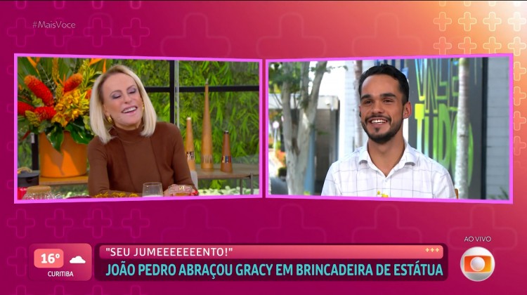 João Pedro fala sobre o momento em que abraçou Gracy em brincadeira de estátua